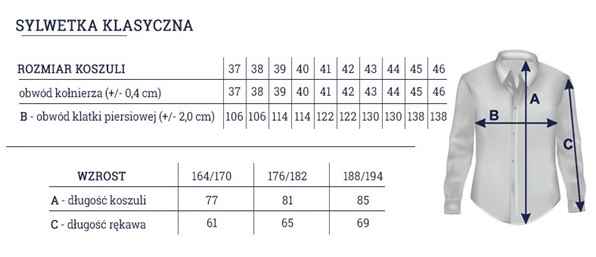 Koszula jest bez wcięcia w tali, polecana osobom tęższym.